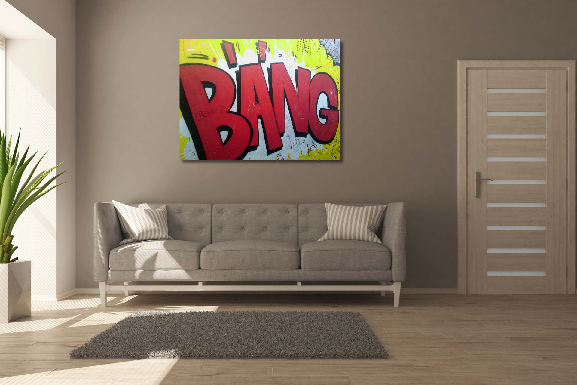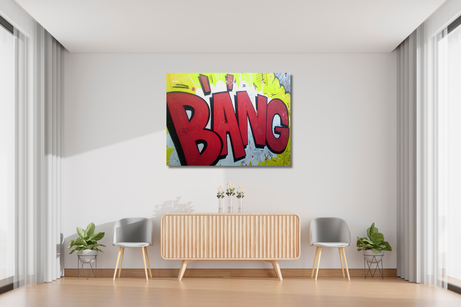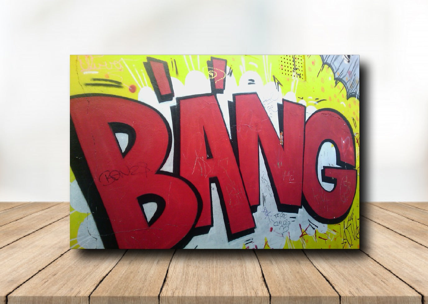 Este cuadro decorativo de estilo urbano y pop art captura la esencia vibrante del graffiti. Con un fondo amarillo explosivo y detalles en rojo y negro, transmite energía, rebeldía y dinamismo, perfecto para espacios modernos y atrevidos.  Ideal para quienes buscan un toque audaz en su decoración.